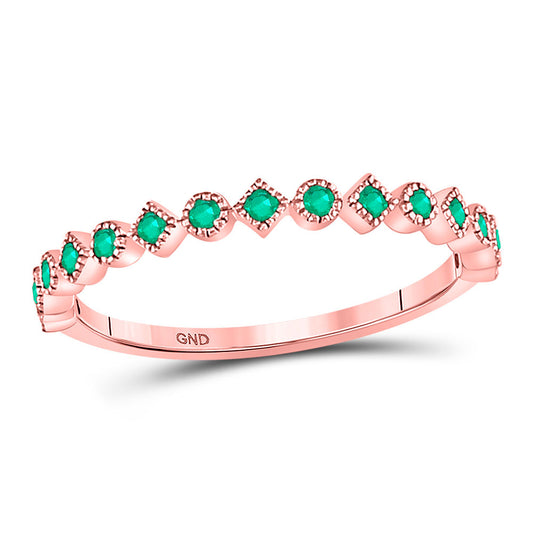 Gold Stackable Band Ring 1/5 Cttw Round Emerald Womens
