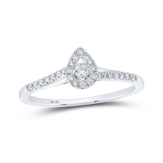 Gold Teardrop Halo Promise Ring 1/5 Cttw Round Natural Diamond Womens