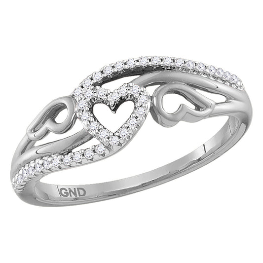 Gold Triple Band Heart Ring 1/8 Cttw Round Natural Diamond Womens