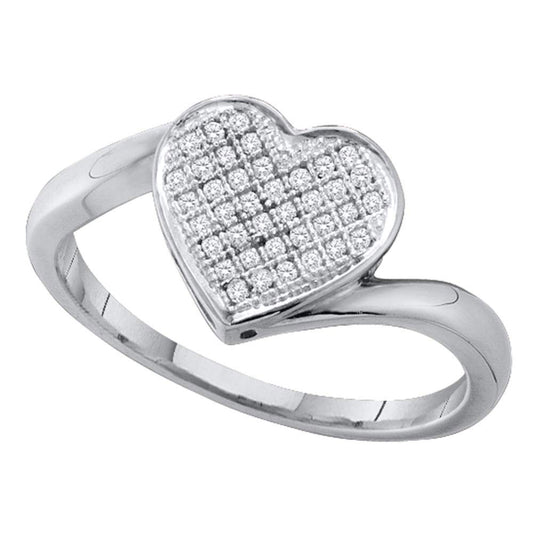 Sterling Silver Heart Ring 1/10 Cttw Round Natural Diamond Womens