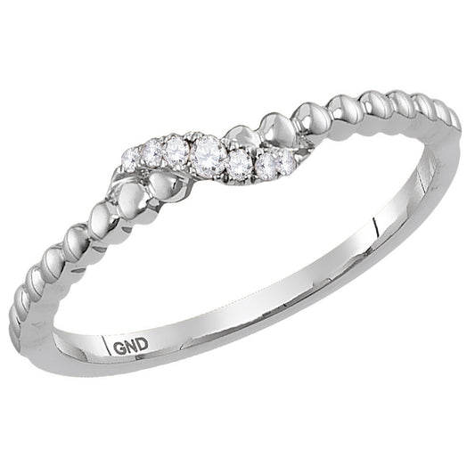 Gold Crossover Stackable Band Ring 1/20 Cttw Round Natural Diamond Womens