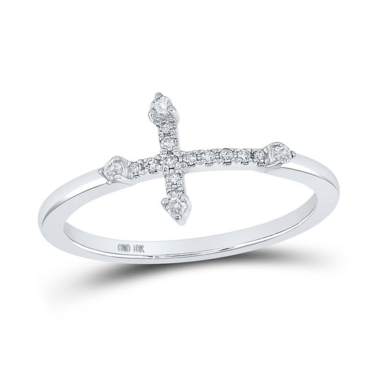 Gold Cross Ring 1/10 Cttw Round Natural Diamond Womens
