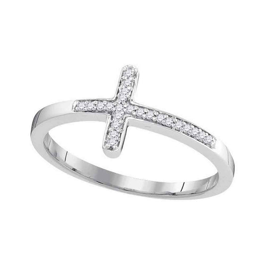 Gold Cross Stackable Band Ring 1/6 Cttw Round Natural Diamond Womens