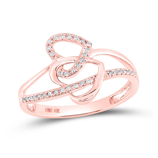 Gold Double Heart Ring 1/20 Cttw Round Natural Diamond Womens