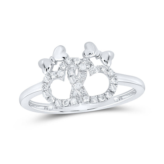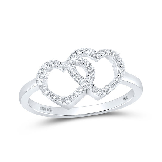 Gold Double Heart Ring 1/10 Cttw Round Natural Diamond Womens