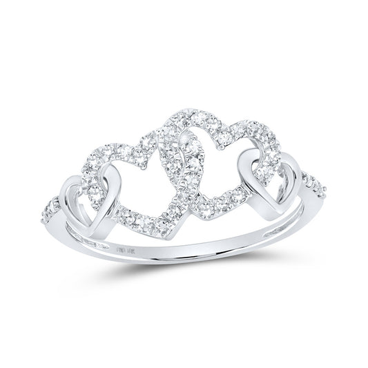 Gold Double Heart Ring 1/4 Cttw Round Natural Diamond Womens