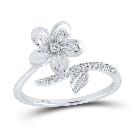 Gold Flower Band Ring 1/8 Cttw Round Natural Diamond Womens
